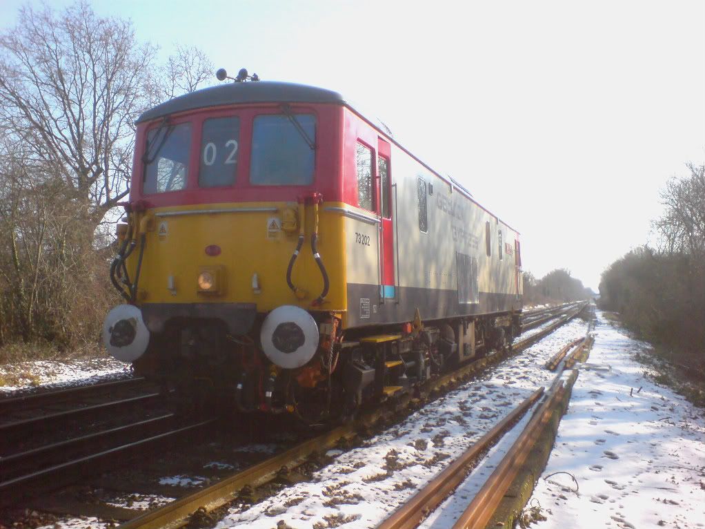 Fetched the old girl home again today, bit of burning to the collector shoe-gear but beyond that, it's fine... Really has been a lovely clear, crisp day here, with snow covered Weald and Downland, then a run through the suburbs... Very nice, all on my own, just me, my loco and I...