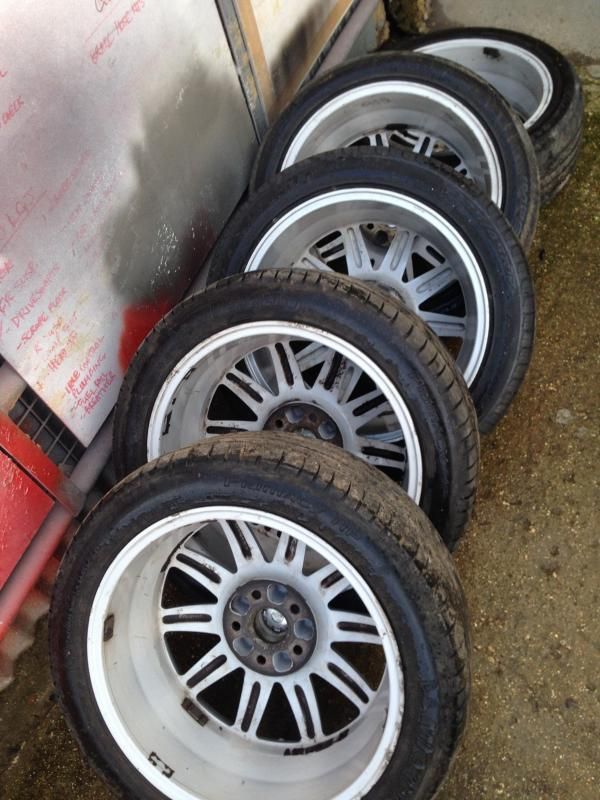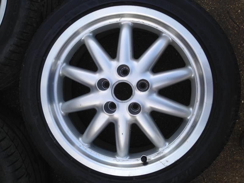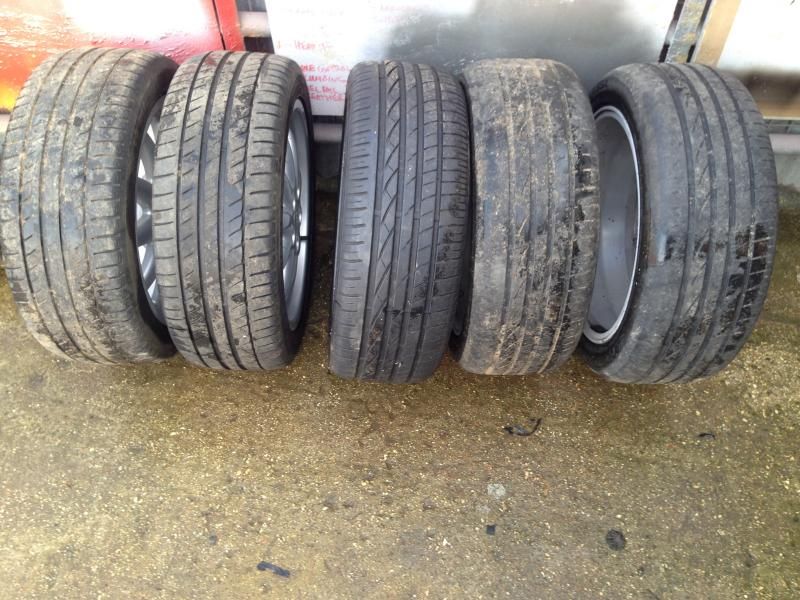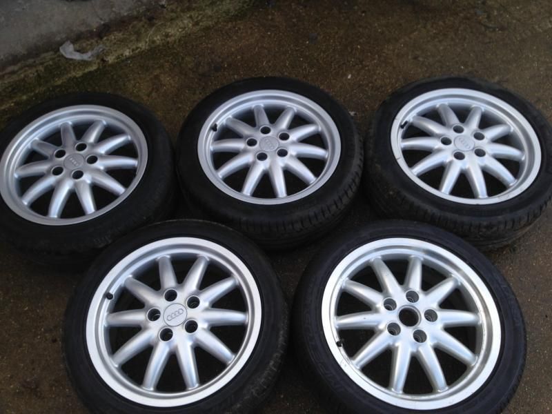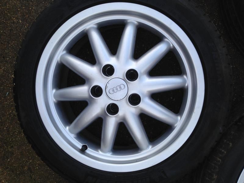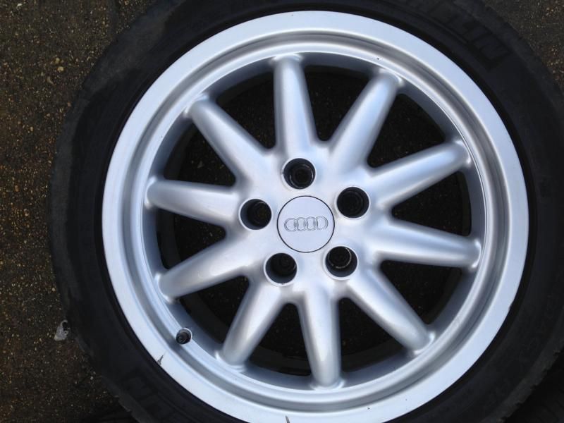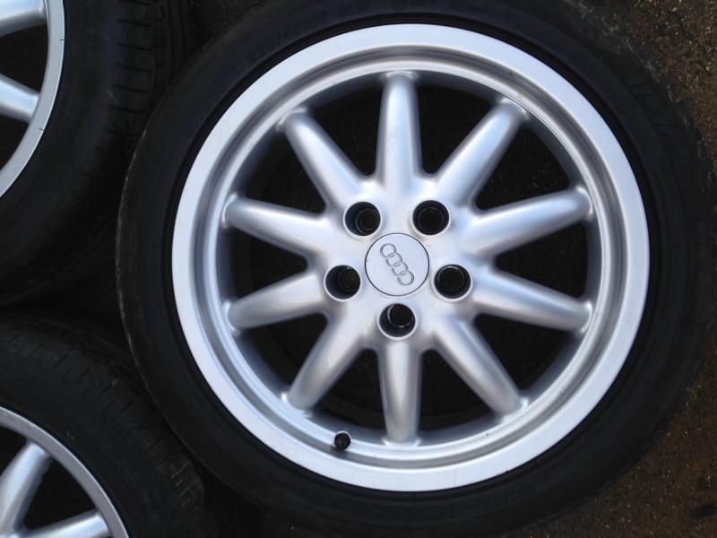 There are two good Michelins on them - about 5mm left from memory, and three Lassa tyres, two of which are worn up the inside - might be legal - but have lots of tread on the bulk of the tyre. The third Lassa is nearly new. Worst case you could buy one new tyre and use a worn one as a spare, or stick them on the back and they'd certainly run fine and have plenty of tread. The tracking was a bit out on the front, which has scrubbed the inside. The wheels are straight and round. I did about 5k miles on them with no issues. The finish is generally in very good condition, but there are a few little marks, and the lacquer on the spare is peeling a little bit - think it's possibly been repainted. I think the rest of them are still in their original finish. ![]() ![]() ![]() ![]() Spare ![]() ![]() Lacquer peel on the spare ![]() ![]() ![]() I'm going back to the original 16" Quattro rims so these are not needed. £275 ono - Collection from Windsor/Bracknell at weekends, or Southam/Warwick area during the week. I sometimes go further afield - up the M6 to Scotland, for example, so if you're not in a rush maybe we can work something out. |