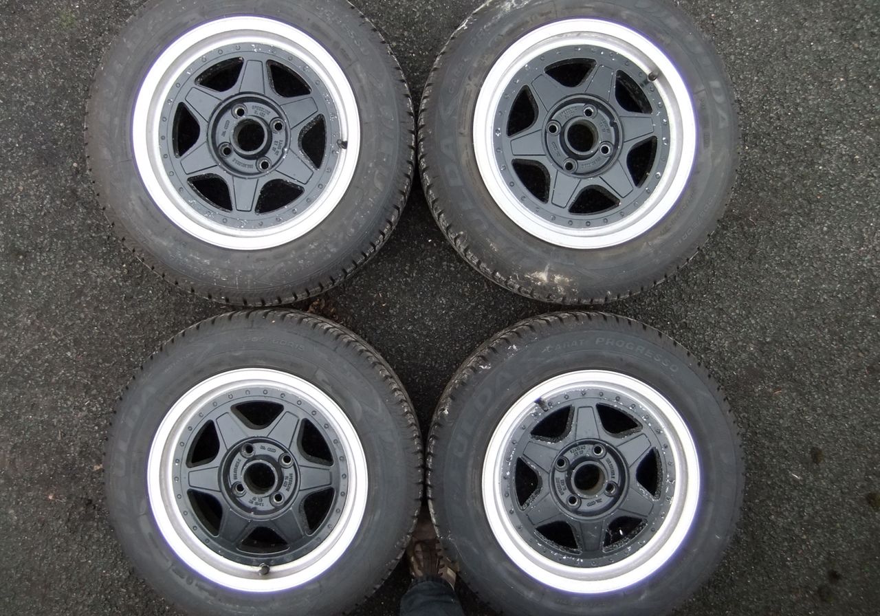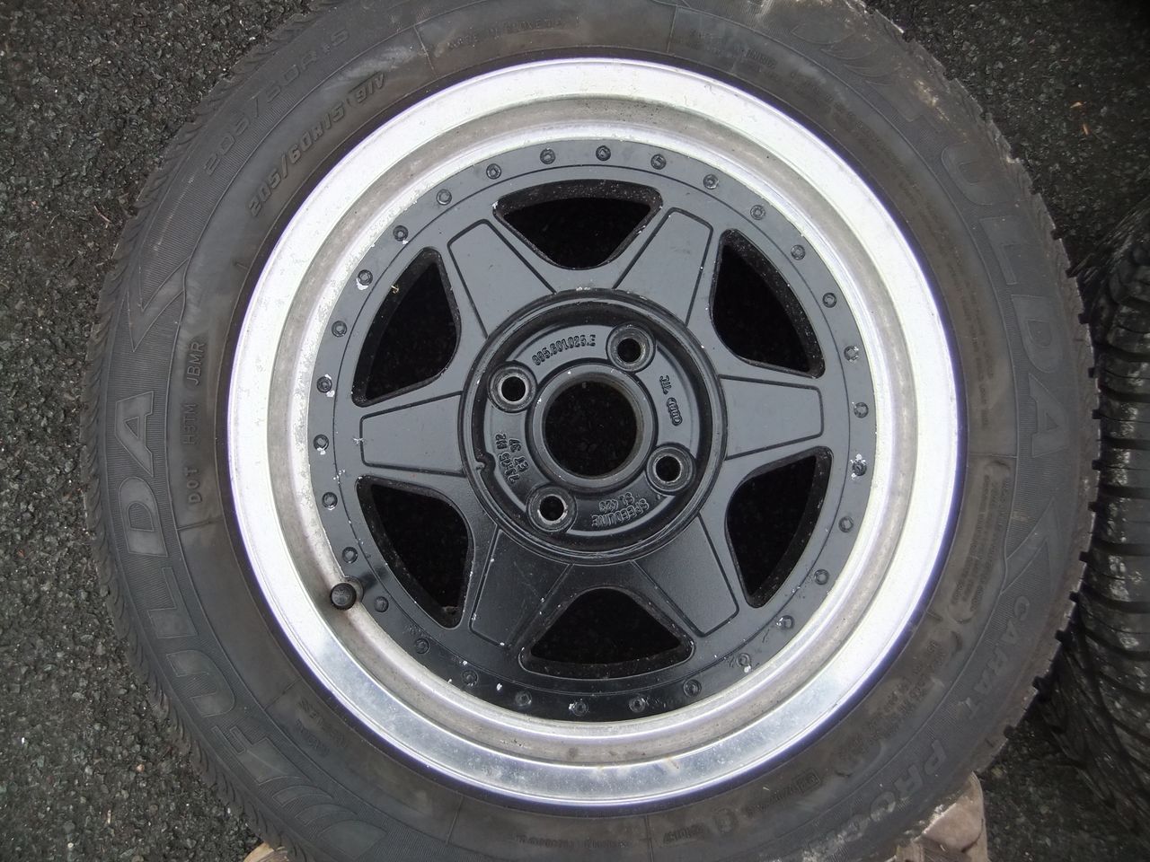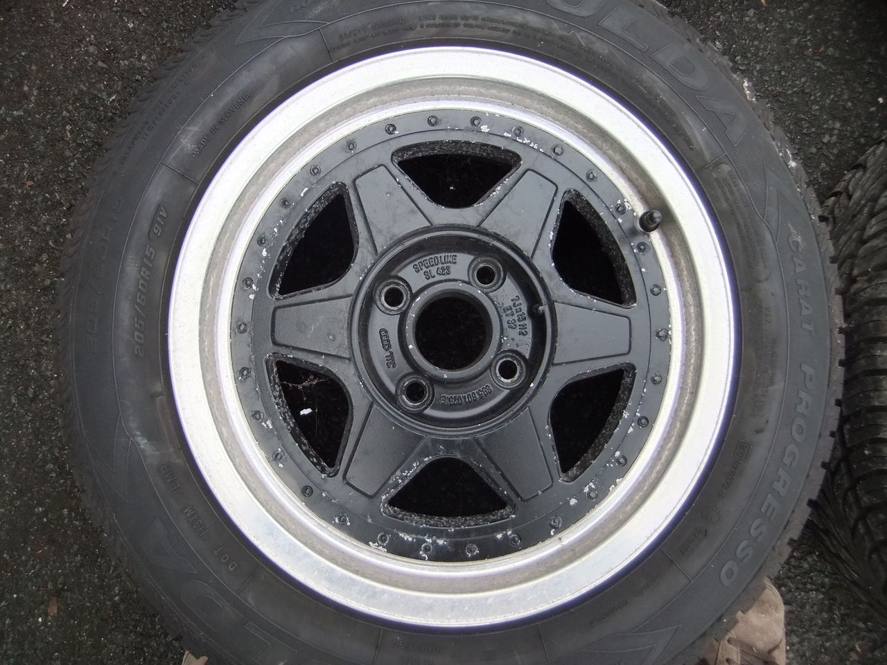 Four B3 coupe Speedlines ET 37 7x15 with good Fulda 205 60 tyres. Includes the fake bolt heads I removed with the intention of gluing them back on. They need repainting to look smart. I have center caps available for £10 each.