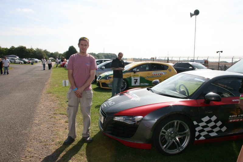 ![]() ![]() Only about 450bhp. Quite nice. We were just standing by the Milltek stand, and the tannoy announced Milltek were giving passenger rides in their R8 and TTS. I spoke to the man (Phil), and he told me I needed a long sleeved top, which I didn't have as it was a hot hot day. So, one of the nice ladies in the signing on place lent me a rather fetching frilly grey cardigan, and then I was scared silly in the R8. 140mph up to Avon Rise, then down to about 60mph for quarry. My head was getting thrown forwards, backwards, and side to side. 3 laps later I managed to breath. Good job the seats are leather, and my trousers were brown. Steve |