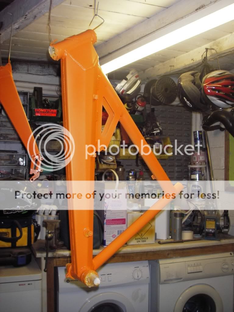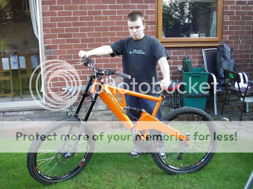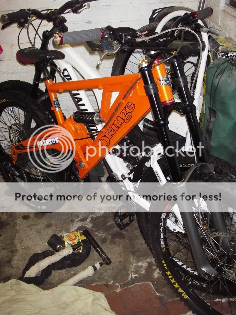 it all started last year when my son Will needed a larger frame so we got an ORANGE patriot frame from ebay which i built up into a decent downhill bike ![]() 10 months on and its getting well used and uprated regulaly ![]() so boys being boys dad can we paint it ford focus ST electric orange , good idea thaught i well i fell of me chair in the paint shop when i was told its a three pack paint primer ,white bace coat,orange bace undercoat and electric orange top coat oh and laquer thats 5 layers well striped of stickers, sanded,panel wiped and ready to go ![]() three layers in it looked like this nice and bace coat orange ![]() then electric layer and 4 coats of laquer latter we built it back up to this ![]() then today the nice people at orange in halifax sent us the sticker kit ![]() ![]() thay even sent us a new embosed badge even though id masked the old one of ![]() the morrel of this story is when your son asks can you paint his mountain bike frame just say no as in now no closer to a new exhaust for the quat as a matter of fact im much further away by £130.12 i need another beer bugger carnt afford one now john...