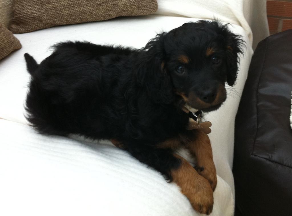 Oscar (cavapoo) cavalier/poodle at 8 weeks last november and now -..