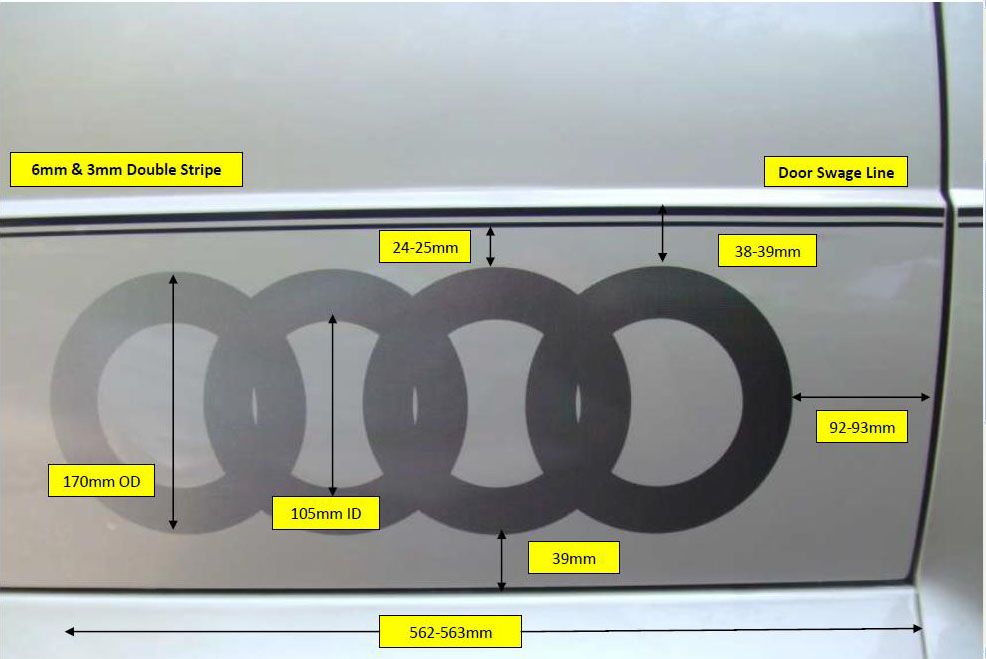 I did a search on this site and via google but I cannot find the answer. I have an 1983 urq and I bought new door ring decals and the audi quattro decals for the bootlids, but I have no idea of where exactly to place them on the panels, could someone give me the measurements?