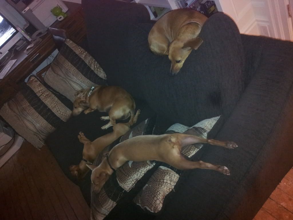 My Pack of mutts relaxing after a hard days bark at anything that moves past my yard