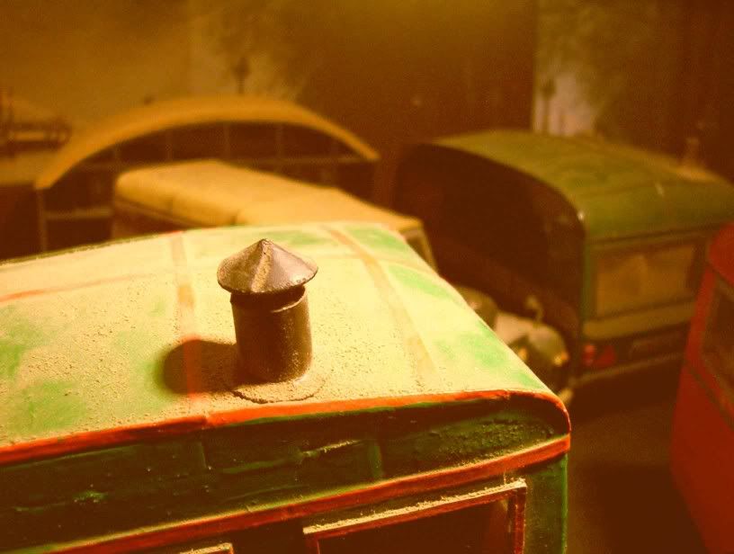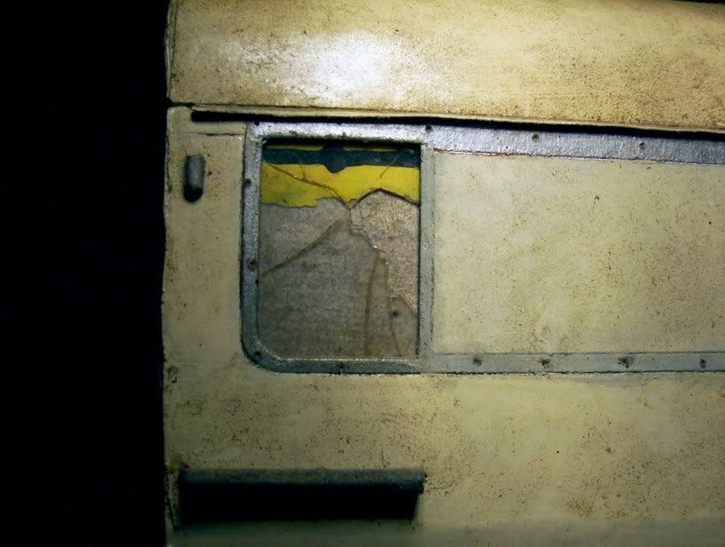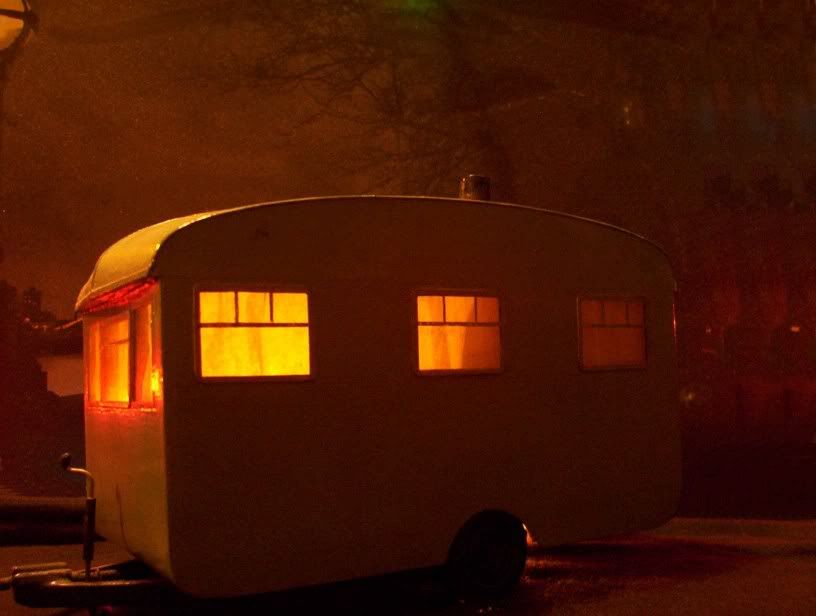Cardboard model caravans etc. I made them in the early 1990s, from breakfast cereal boxes, train tickets and tea bag boxes, balsa wood, plastic phone cards etc.